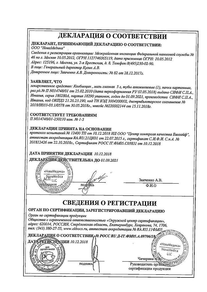 Применение. Как все антибиотики, глазная мазь Колбиоцин должна использоваться только по назначению врача.