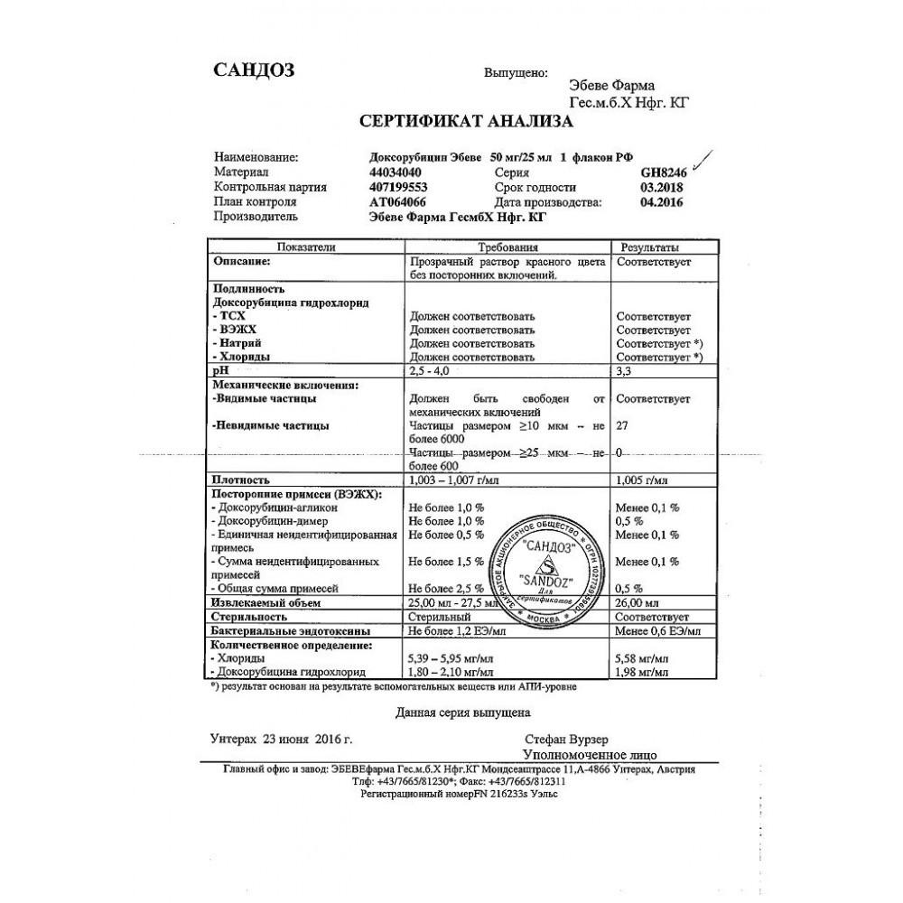 Сертификаты Доксорубицин