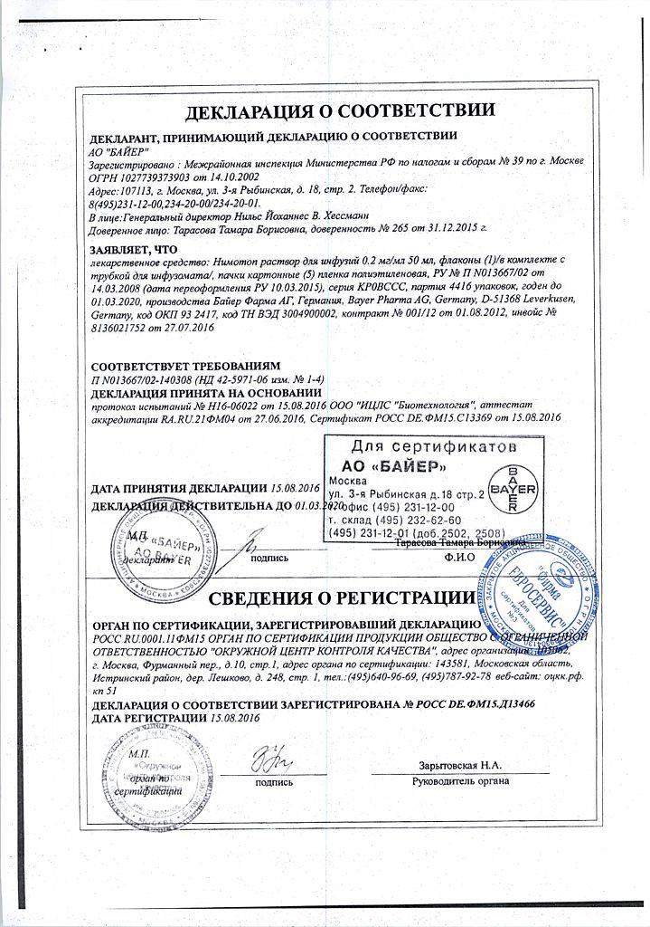 Необходимо обсудить с врачом все принимаемые вместе с Нимотопом лекарства, чтобы избежать нежелательных взаимодействий.