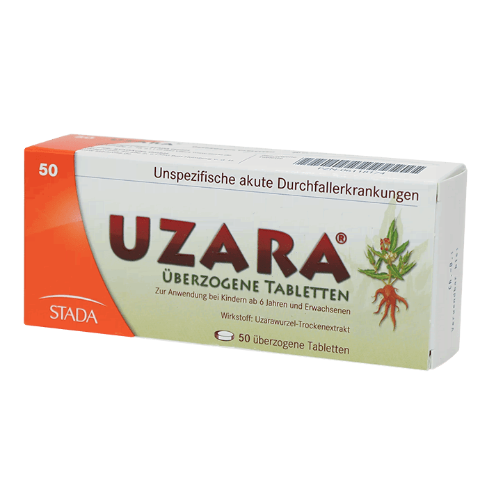 Узара – антидиарейный препарат растительного происхождения, угнетающий перистальтику кишечника. Активное вещество – сухой экстракт корня узары. Узара регулирует моторику кишечника, способствуя мягкому и быстрому устранению диареи. Также Uzara эффективно устраняет тошноту — симптом, довольно часто сопутствующий диарее.