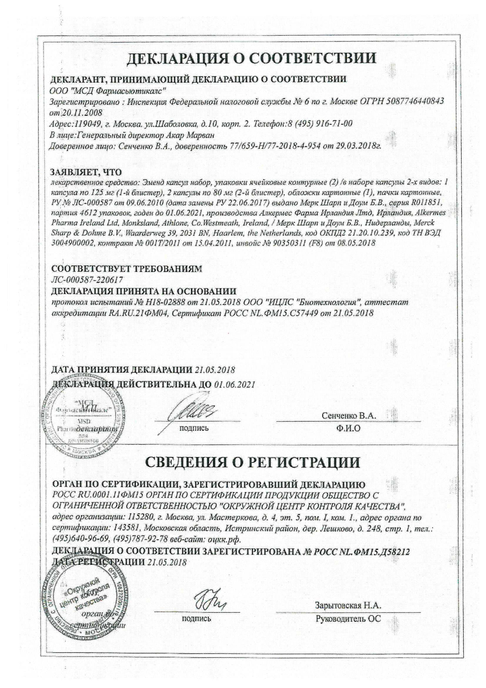 Форма выпуска, упаковка и состав Эменд®
