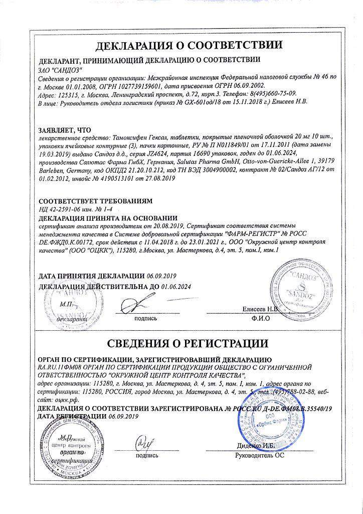 Форма выпуска, упаковка и состав Тамоксифен Гексал