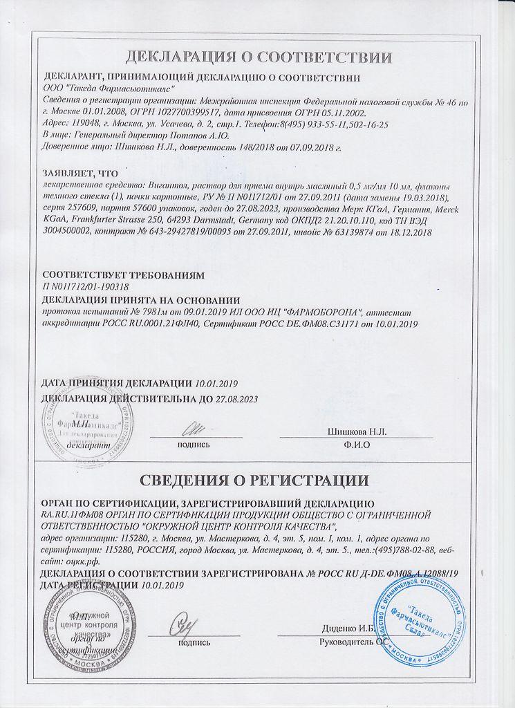 Особые указания. Вигантол должен применяться под врачебным контролем и с регулярным отслеживанием уровня концентрации Са2 в моче и крови. При продолжительном применении возможно развитие хронического гипервитаминоза D3. Этот риск существенно возрастает при одновременном применении с другими аналогами витамина D, поэтому следует внимательно изучать состав витаминных препаратов и пищевых добавок, которые вы принимаете.