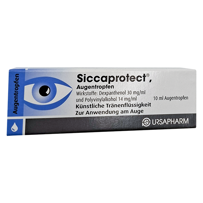 Сикапротект — увлажняющие офтальмологические капли, используют в качестве заменителя слезной жидкости. Сикапротект представляет собой комбинацию декспантенола и поливинилового спирта. Декспантенол - спиртовой аналог пантотеновой кислоты. Пантотеновая кислота является одним из витаминов группы В и принимает участие во многих процессах обмена веществ. Декспантенол ускоряет эпителизацию, а также при местном применении оказывает противовоспалительное и антизудное действие. Поливиниловый спирт действует на поверхность роговицы как увлажняющее и смазывающее вещество, увеличивая время контакта с роговицей предроговой слезной пленки. Снижая поверхностное натяжение, поливиниловый спирт дает возможность достичь более равномерного распределения декспантенола на передней поверхности глаза.